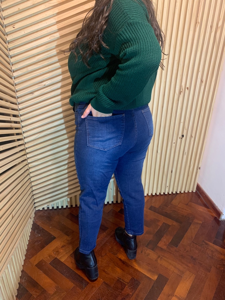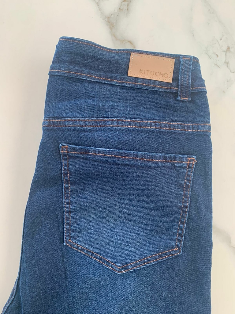 Jean onda retro, levemente ajustado en la cintura y comienza a abrirse en la zona de la cadera, para dar el efecto visual de compensar los distintos volúmenes del cuerpo en dichas zonas. Lona con mucho spandex y de apariencia rígida, lo que le otorga comodidad y belleza absoluta .